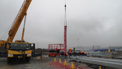 自2月25日工程复工以来,项目部在严格落实疫情防控措施的基础上,合理安排施工工序,全员火力全开,满怀信心和激情朝着既定目标努力,各施工队也迅速进入工作状态,克服持续阴雨等天气,竭力组织施工,目前各单体均已进入正常施工阶段,现场初步形成大干局面。3月9日11点18分,在项目安全员多次检查确认各项安全措施后,温州百威工程首根钢柱缓缓起吊并精准就位,标志着此项工程钢结构安装正式开始,项目由此进入“加速”阶段。