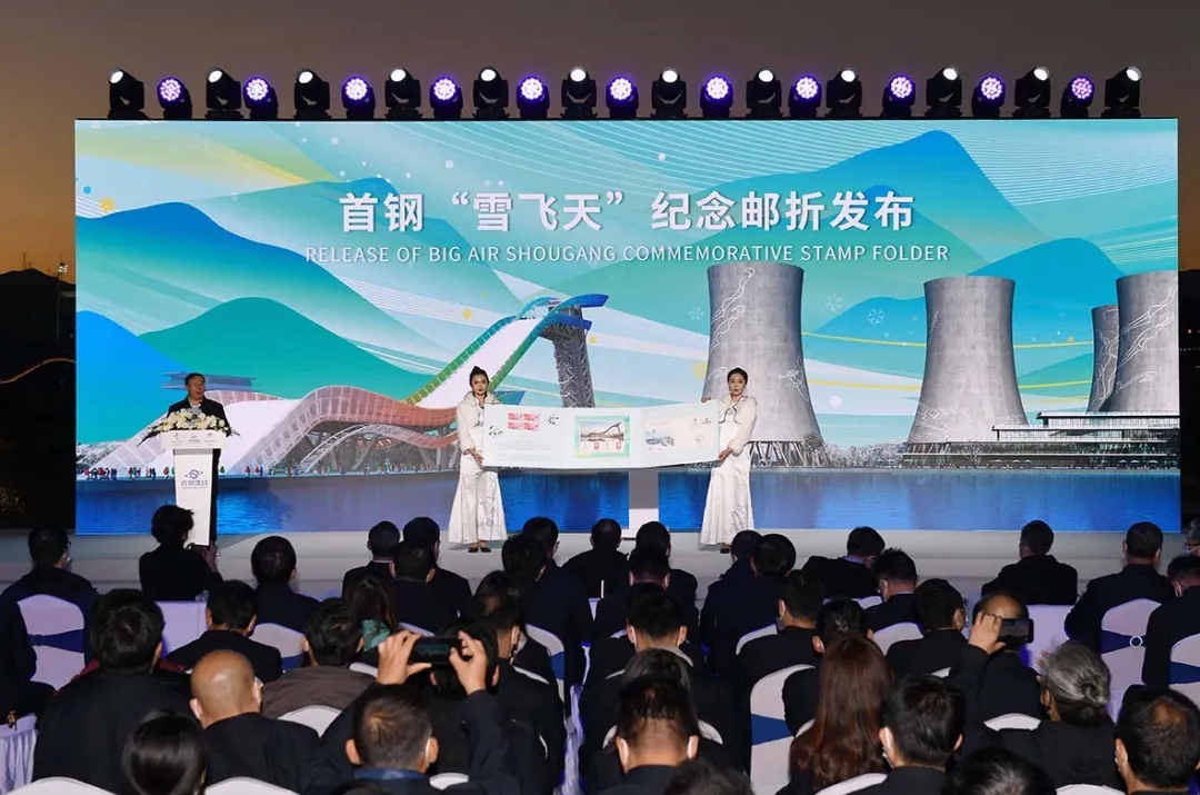 仪式上,梁宗平发布了首钢“雪飞天”纪念邮折。纪念邮折是首钢集团特意为北京冬奥会倒计时100天准备的礼物,以首钢滑雪大跳台为主要设计元素,以蓝色为主色调,融入了北京冬季奥林匹克公园风光、冬奥会吉祥物“冰墩墩”、冬奥体育图标、合作伙伴组合标识等冬奥元素,展现了首钢转型发展的突出成果,凸显了首钢与冬奥的紧密联系。