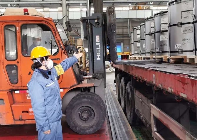 从生产卷驳运数量的提前跟踪确认、驳运过程的指挥和驳运质量跟踪;到成品卷数量的确认、叉运质量的保证、流向的跟踪;到资材药剂叉运的全过程跟踪;每一个环节她都亲自确认把关,在班组员工的高效配合下牵引车和叉车保持高效运转,2月以来1420区域日出车19台次、往返600余趟,硅钢区域日出车29台次、往返900余趟;驳运生产卷25500余吨、外发成品卷3100余吨,叉运资材药剂500余吨,确保了疫情管控期间现场的生产平稳顺行。