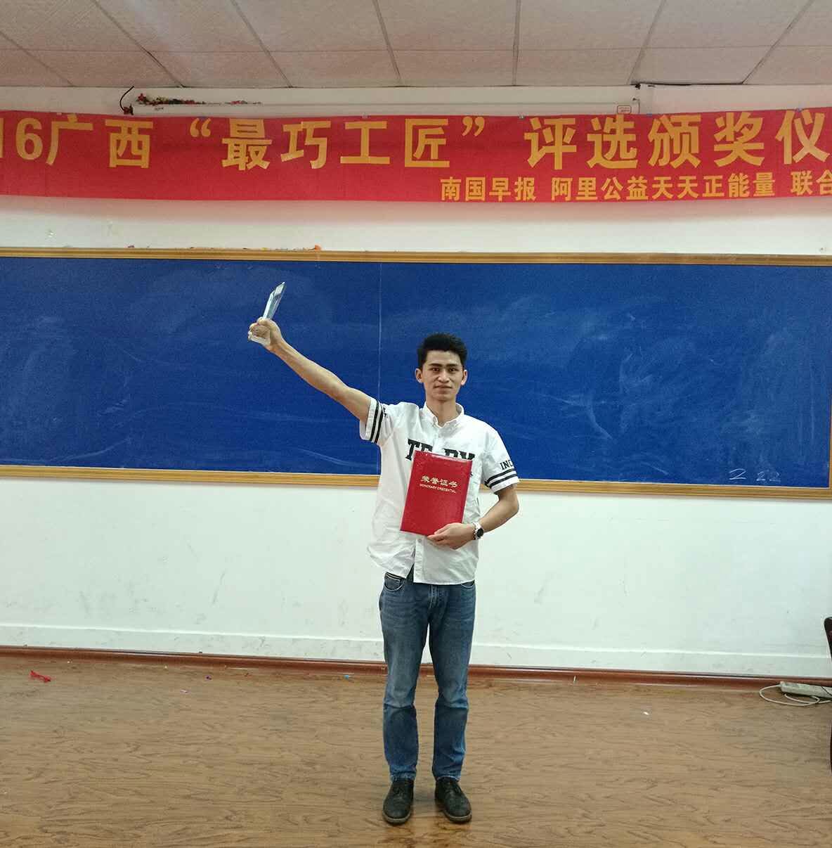 7月24日,由广西壮族自治区《南国早报》联合阿里公益天天正能量举办的2016广西“最巧工匠”评选活动名单揭晓,中国十九冶集团员工王晨宇榜上有名,获得“广西最巧工匠”荣誉称号。