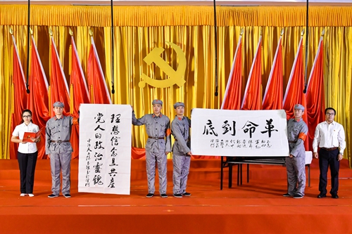 “我们纪念朱德同志,就是要学习他追求真理、不忘初心的坚定信念。”音乐朗诵配书法表演《朱德之“德”》讲述了开国元勋朱德同志讲政德的先进事迹,彰显了朱德同志追求真理,不忘初心的理想信念,同时展示书法作品“革命到底”、“理想信念是共产党人的政治灵魂”,烘托了浓厚的学习氛围。广大党员干部在重温我们党波澜壮阔的奋斗历程中追溯革命初心,悟其道、明其理、通其意、感其情,从对初心和使命的深刻理解中汲取政治能量、思想智慧、前进动力。