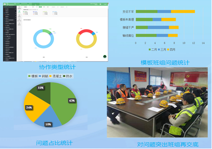 在鲁班协同平台中,能统计各种质量安全问题的状态,以及各部门、各分包和班组的使用情况,通过对施工现场发生的问题进行分析,可以了解各作业队伍的能力缺陷所在,据此加强对其管理,交底、培训甚至清退,以保证施工质量。例如,通过对某月份质量问题的统计,发现其中一楼栋模板质量问题占比较高,经分析,该模板班组质量意识淡薄,诸多问题重复出现,技术部和质检站加强对该班组管理人员的管理,要求该班组管理人员加强对现场的管控,同时加大对作业班组的交底频次。