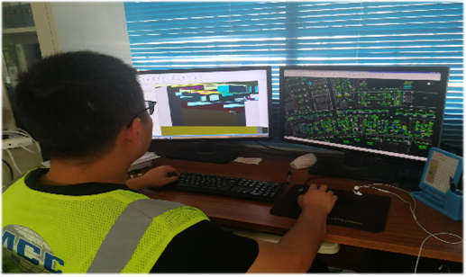 机电深化设计。首先进行管线的排布并优化,提交给项目工程技术管理人员进行审核,通过后再提交给设计院,得到设计院认可后即可进行深化图纸出图,用于指导现场施工。本工程共查出管线与结构冲突、管线之间碰撞、风系统设计有误等问题共1200余项,优化860余项,安装专业图纸问题会审记录130项,BIM实施团队根据现场需求实时对模型进行维护调整。