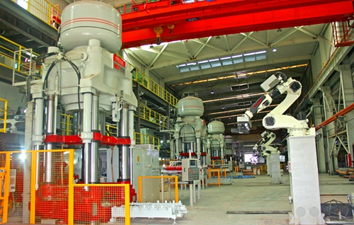 目前,该公司6台全自动液压压砖机、配套6台机械手,实现了从布料—压砖—码跺—烧成的耐火砖制品的全自动生产。