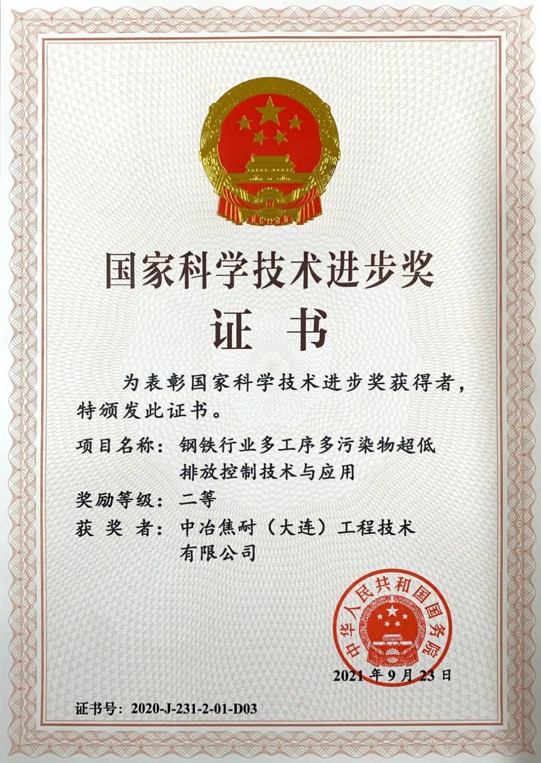中冶焦耐参与完成“钢铁行业多工序多污染物超低排放控制技术与应用”成果符合当前国家的产业政策,对提升炼焦产业清洁生产水平、促进焦化企业环保治理升级起到积极作用。目前,已应用建设的焦炉烟气脱硫脱硝工程42套,每年可减少氮氧化物排放7.85万吨,减少二氧化硫排放2.6万吨。如京津冀地区焦化企业实施后,每年可减少氮氧化物排放39万吨,减少二氧化硫排放37万吨,对该区域打赢蓝天保卫战具有重要意义。同时完成河钢、宝钢、鞍钢、印度TATA等国内外大型企业92台套工程,实现废气处理规模达2475亿立方米/年。成果应用于保障企业用户正常生产,直接惠及企业产值超过2000亿元/年,为污染物高效减排、改善生态环境、促进钢铁行业绿色发展作出重要贡献。近年来,中冶焦耐在焦炉烟气脱硫脱硝工艺技术取得重大技术突破,达到世界先进水平,填补中国焦化领域焦炉烟气脱硫脱硝工艺与装备的技术空白,有力推动了焦化烟气治理低成本绿色生产技术水平、焦化环保烟气治理水平的提升。
