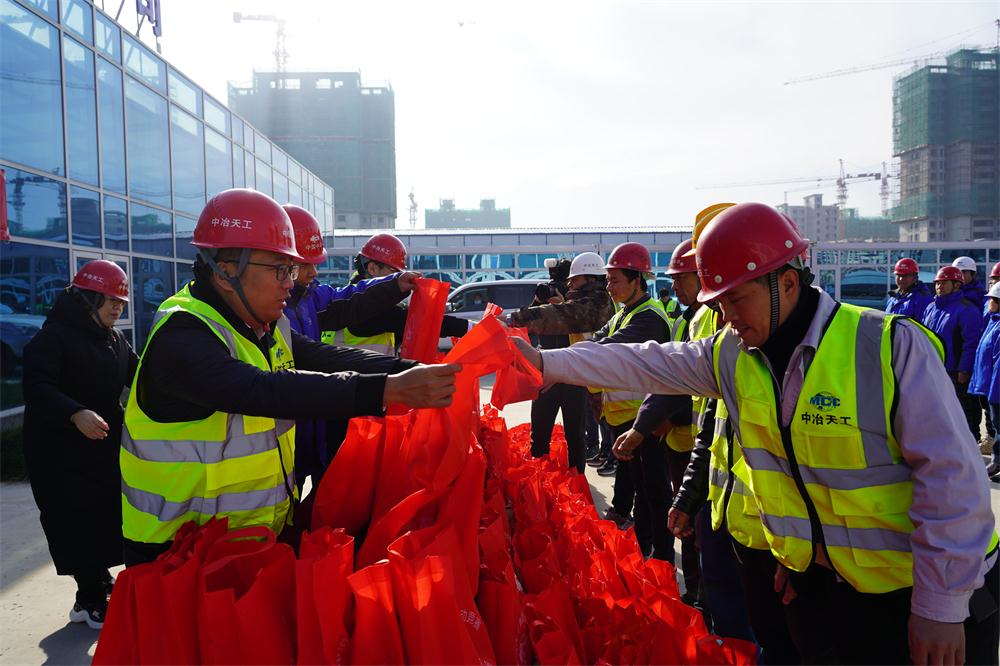 本次活动特别邀请到天津市辰悦建设投资有限公司、天津广厦工程咨询有限公司相关领导和天津日报、央广网等主流媒体参加。活动现场,大家对中冶天工主要业绩、企业特色作了进一步了解,项目负责人王红胜就大张庄项目“天津市级文明工地”创建进行了细致介绍,并带领参观了农民工实名制人脸识别系统、样板展示区、工程实体样板间等内容。活动最后开展了“冲刺目标鼓士气 百日大干创佳绩”劳动竞赛慰问活动,为奋斗在施工一线的建设者们送去冬日的温暖,为项目早日完工注入强劲的力量。