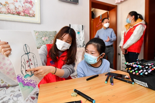 3月4日下午,志愿者们带着慰问品来到了天津支援湖北医疗队成员之一的医务工作者家中,详细地询问了孩子的学习、生活状况,并通过他们向援助湖北的医务人员表示崇高的敬意。随后,志愿者和孩子一起执笔绘画,画出妈妈“逆行”的背影,并加注了“武汉加油”的字样。孩子盯着画说“今天是我妈妈去湖北的第39天,不知道她在一线生活的怎么样,但是我把妈妈画胖了”,朴实的话语中充满了对妈妈的思念,不禁让在场的志愿者们动容。