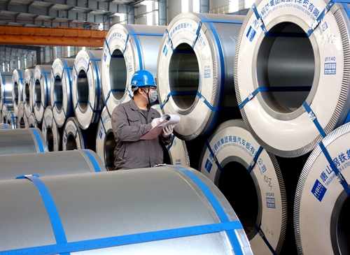 3月3日,河钢唐钢物流分公司高强汽车板库区岗位职工正在组织冷轧卷板产品外发。