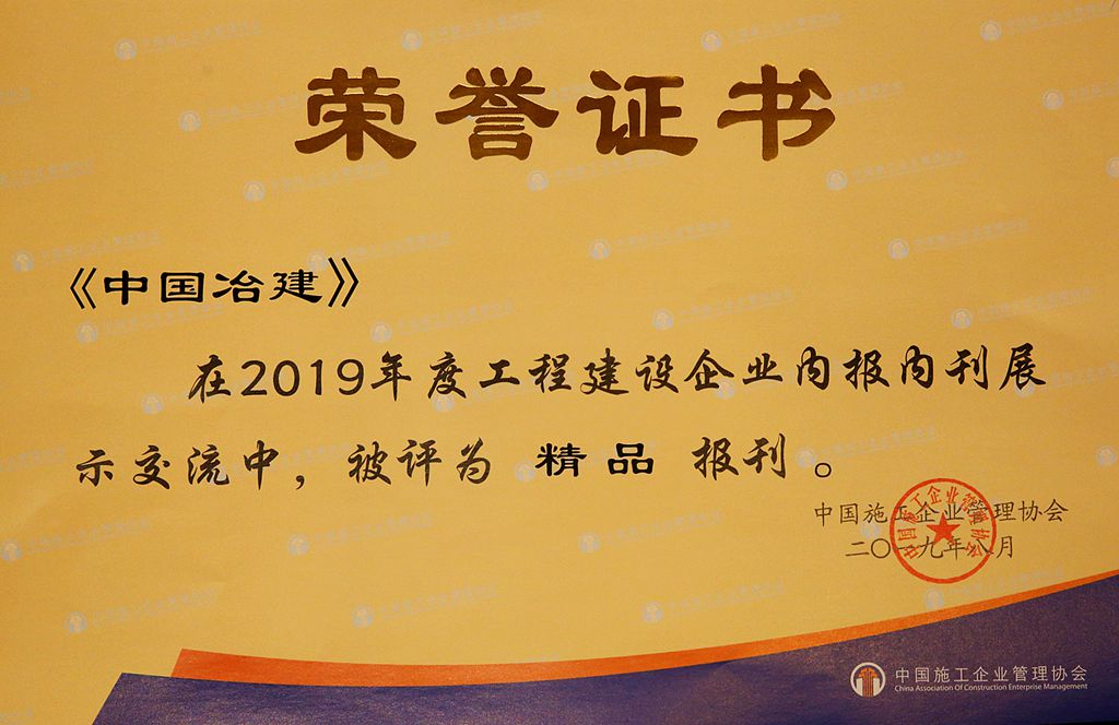 《中国冶建》连续11年获得 工程建设行业期刊评比最高荣誉“精品奖”