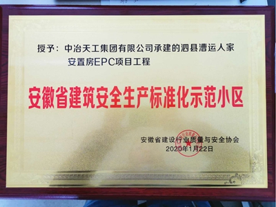 中冶天工项目荣获“安徽省建筑安全生产标准化示范小区”荣誉称号