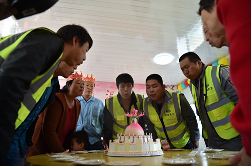 为了给工人提供尽孝道的机会,安排了现场为父母“洗脚”的环节,将活动推向了小高潮,过程中,老人的眼里流露着对孩子的关爱,工人小心翼翼的动作表达着对父母的关心;老人含着眼泪的笑容流露着内心的感动,工人紧低的头表达着对父母的亏欠。此外考虑到工人常年在外工作,很少陪伴父母,项目部还精心准备了生日蛋糕,组织工友们共同为远道而来的父母过生日,暖心的生日歌响起,在场的所有人都被这熟悉的旋律所打动,有的留下了感动的泪水、有的露出了欢喜的笑容,此时的项目部是幸福的、温馨的。活动最后,在场人员共同演唱了歌曲《感恩的心》,以表达对父母、对家中老人的感恩与祝福。下午,项目部组织工人陪着父母乘船游览海河,感受津城之美。