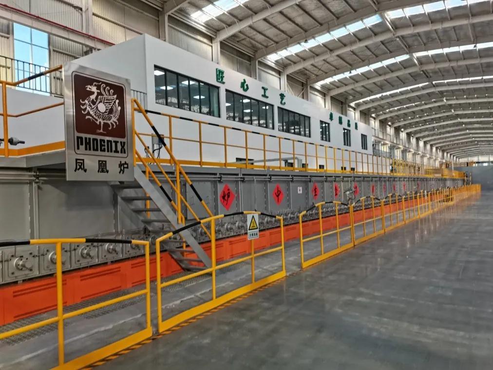 该新型高强钢连续热处理生产线包括一座淬火炉和一座回火炉,专用于薄板热处理,钢板的品种和厚度对热处理炉炉温均匀性和控温精准性等提出更严格的要求,中冶京诚凤凰炉潜心研发,为其量身打造超大功率电加热辊底式热处理炉。