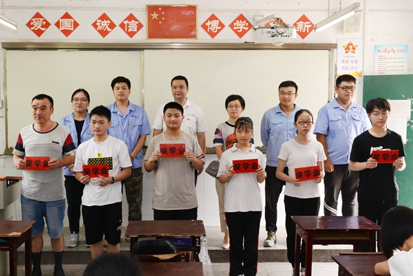 7月5日下午,中国一冶普仁医院项目党支部的青年志愿者及劳务单位代表为武汉市青山区钢城十三中初三(一)班的9名优秀学生颁发奖学金,奖励他们在今年中考时的优异成绩。