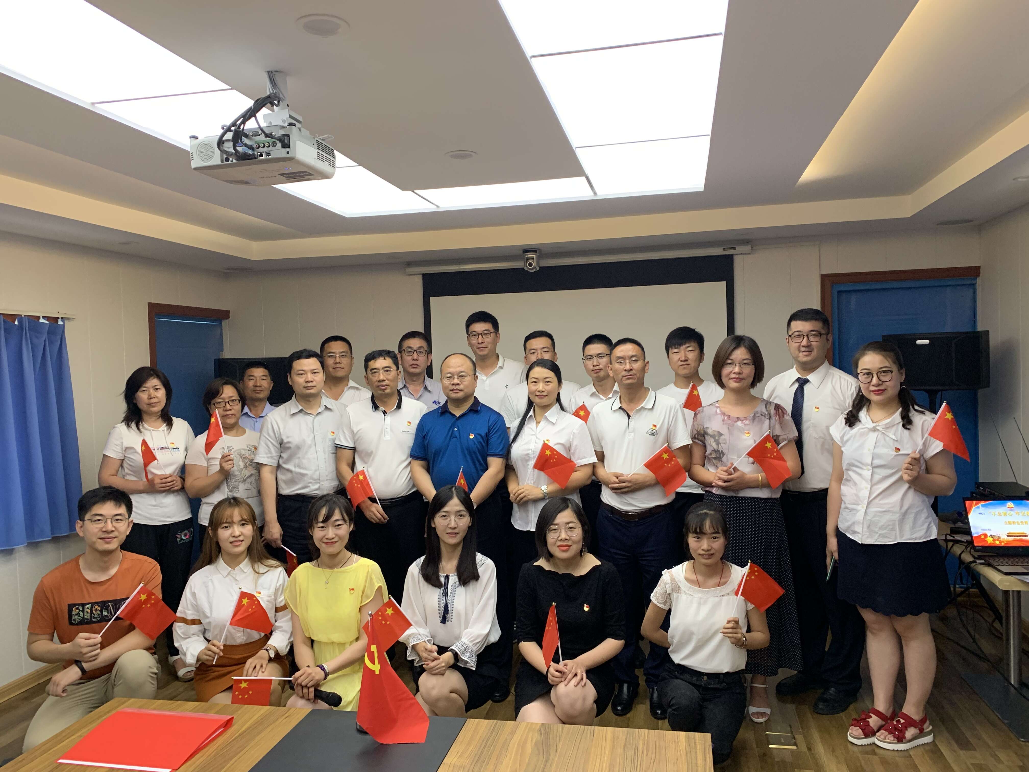 2019年,是中国共产党建党98周年,也是新中国70岁华诞,为进一步深化学习习近平新时代中国特色社会主义思想,在全党开展“不忘初心、牢记使命”主题教育之际,中国华冶科工集团有限公司在潍坊市北辰医院项目部举办“年轻干部要做到信念坚、政治强、本领高、作风硬”主题特色党课活动。中国华冶集团党委工作部部长鹿志勇、副部长陈聃,青岛分公司党委委员、党委副书记张峰,青岛分公司党委委员、潍坊市北辰医院项目党支部书记王宣,青岛分公司领导班子成员、机关支部党员代表、项目支部党员及入党积极分子等20余人参加了本次活动。