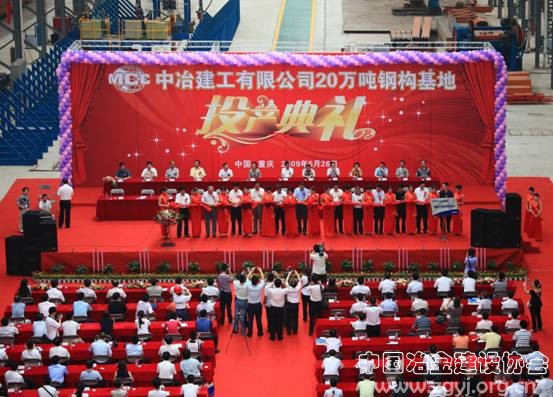 中冶集团副董事长、党委书记、中冶股份公司总裁沈鹤庭在典礼上致辞,表示在中冶董事会、党委会和经营层的坚强领导下,在重庆市委市政府各级领导一如既往的关心和支持下,中冶建工20万吨钢结构基地一定能够如期实现各项工作目标,一定能够建设成为环境友好型和资源节约型企业,为促进重庆市的地方经济建设,为把中冶集团打造成为具有国际竞争力的世界一流企业集团做出新的更大的贡献。