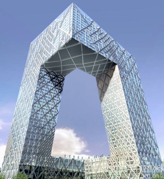 CCTV主楼是由强劲富有规律又具个体分化特点的菱形钢格构图案组成,幕墙的设计概念是主结构的设计延伸,也是结构概念在建筑外表的展现,主楼幕墙的支撑系统是基于每个"菱型钢格构"单元的整合,每个挂板形成坚固的独立单元,悬挂于组成幕墙斜撑构架的斜格构之上,结构的总体位移被累积在每个"菱型钢格构"的边缘,并最终被槽式钢结构承受。