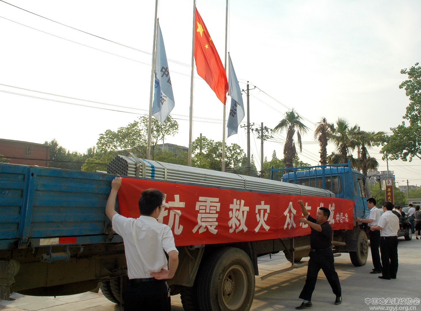 5月20日,武汉市支援地震灾区的4000顶帐篷尚缺部分支撑钢骨架。当日上午,接到市政府紧急求援电话后,一冶领导非常重视,迅速指派专人多方联系供应商组织货源,采购了10吨钢管捐给灾区,傍晚即由专人跟车护卫到流芳车站装车发运,当办完交接手续并协助卸货回到家后,已是21日凌晨2时。